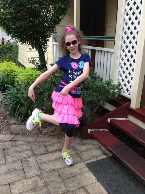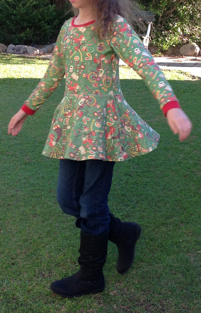 When Spoonflower had their "Girl Power" contest a little while ago, I saw the ideal fabric for a groovy Skater-dress. Even more ideal was when Amanda posted on Kitchy Coo the tutorial for the Skater-Dress-Peplum-pattern-hack! Perfect for a Tween Girl :)