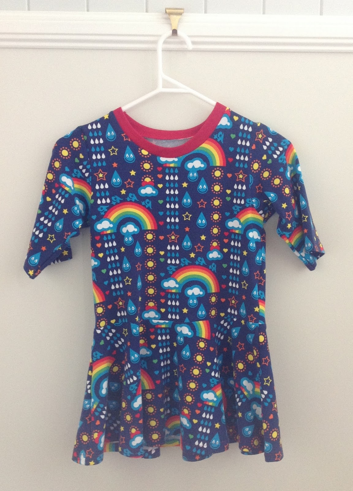 Of course I used the Skater pattern for this beauty again, and two recycled adult t-shirts and half a meter of yellow knit from Spotlight.